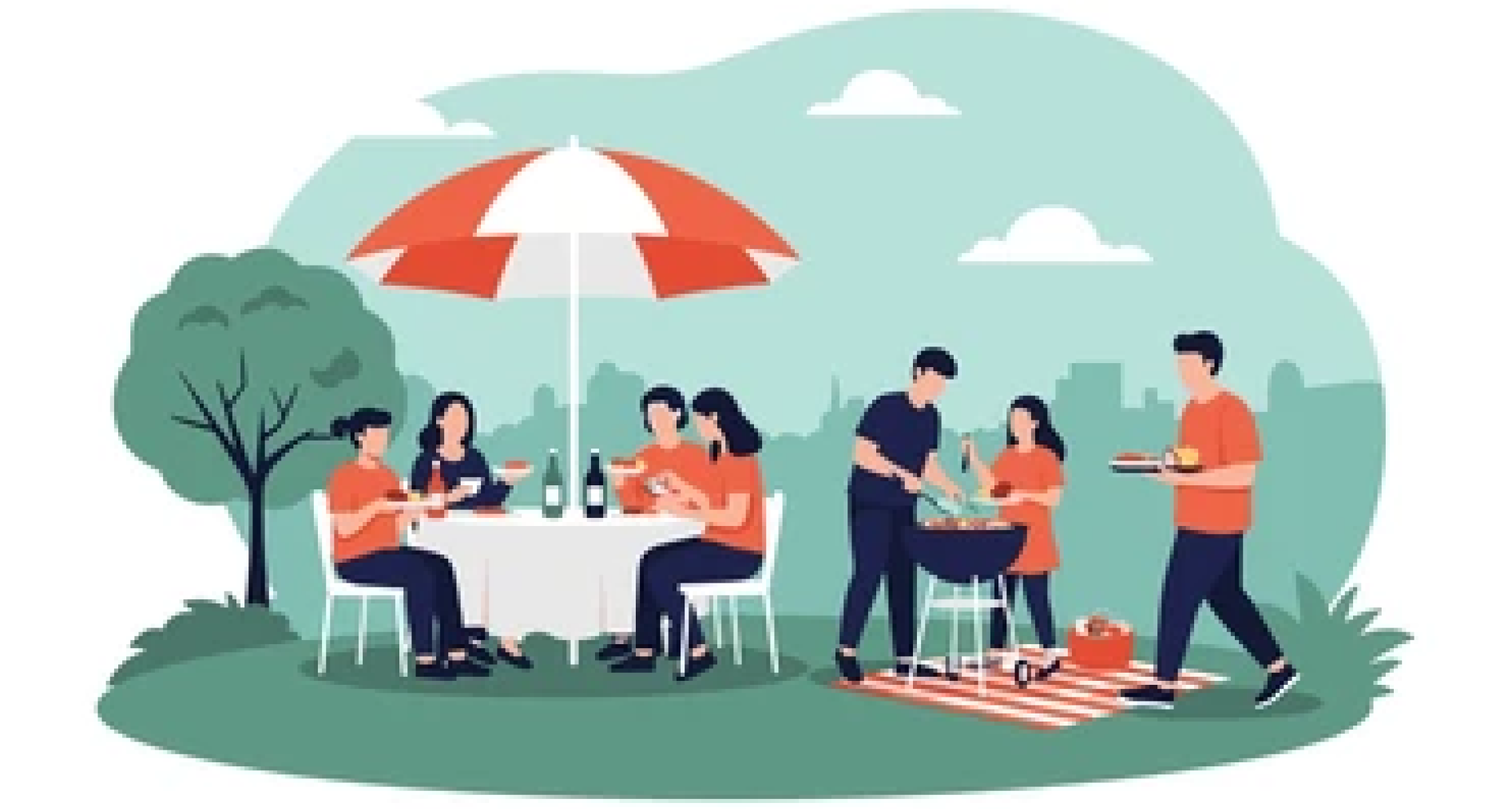 After one of the training sessions, everyone gathers for a joint barbecue evening.